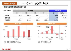 エレクトロニックデバイスは、売上高が前年同期比11.4%増。「堅調な顧客需要を取り込んだ」という。営業利益は26.1%減だが、前年度第4四半期からの黒字転換を果たしている。