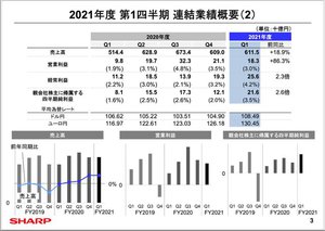 シャープ(株)は本日、2021年度第1四半期の決算説明会を開催し、同社代表取締役社長 兼 COO 野村勝明氏が説明を行なった。