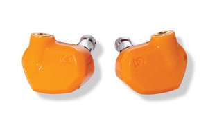 本体色はオレンジ。周波数特性は5Hz - 18kHz、入力感度は94dB SPL@1kHz:67mVrms、インピーダンスは46.4Ω@1kHz。