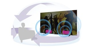 オーディオ面では、フルレンジユニット2基、ウーファー1基を総合出力40Wのマルチアンプで駆動する「重低音立体音響システム」を搭載。フルレンジユニットはバスレフボックス内に配置され、パワフルで臨場感あふれるサウンドを再現できるとする。また、立体感と迫力のあるドルビーアトモス再生にも対応する。