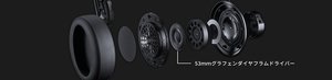ゲームにおける理想的なサウンドを追求するため、レイヤードシステム設計や53mmグラフェンダイアフラムドライバーを搭載。歪のない最適な音を再生できるとする。また9.7mmの大型マイクは上下左右に稼働させて最適なポジショニングが可能で、通話ノイズキャンセリング機能と合わせストレスのない通話が可能だとしている。