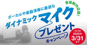 期間中にミキサー「Model 12」を購入の上特設サイトにて応募することで、レコーディングに適したダイナミックマイク「TM-82」がプレゼントされる音楽制作者への応援を目的としたキャンペーン。応募締切は2022年4月15日の23時59分までとなる。