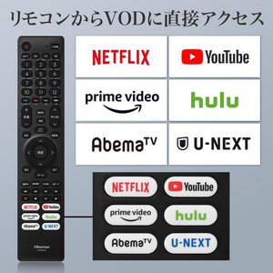 YouTube、Netflix、Hulu、Amazon Prime Video、U-NEXT、ABEMA、dTV、Rakuten TV、Paravi、DMM.com スカパーondemand、TSUTAYA TVという12種類の動画サービスに対応。リモコンにはこのうちYouTube、Netflix、Hulu、Amazon Prime Video、U-NEXT、ABEMAに直接アクセスできるダイレクトボタンを搭載する。ホーム画面上では、よく利用するサービス順に表示を入れ替えるなどのカスタマイズも行える。