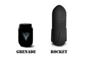 「ROCKET」はワイヤレスマイク/コンデンサーマイクにも対応する伸縮式の大型モデルで、展開時の内部寸法はΦ63mm×300mm、質量は321g。「GRENADE」はカラビナでバックに取り付けて持ち運ぶことも可能な小型モデルで、内部寸法はΦ63×67.85mm、質量は125g。