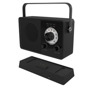 送信機は充電器としても機能し、スピーカーを設置することで充電が行えるほか、スピーカーはACアダプターからの充電も可能。2.4GHzの無線通信規格を採用したことで、 良質な音と低遅延の通信を実現したという。またワイドFM対応のラジオをスピーカーに搭載しており、 災害時にも使用できると説明する。