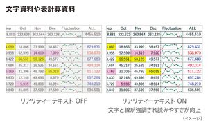 入力された映像をデータベース上の最適な画像と照合する「リアリティクリエーション」が改良され、オリジナルの映像信号の質感やデティール、さらにはデータ編集や伝送時に失われた情報も復元し、写真や映像の鮮鋭感や美しさを再現すると説明。また、新たに細かい文字や線などを強調する「リアリティテキスト機能」を追加され、文字資料や表計算資料もハッキリ投写することが可能になったという。