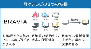 「月々テレビ」は、ソニーの4Kテレビを5年間月々定額で利用できるサービス。今回、ここにセットオプションとしてPS5も追加で利用できるサービスが加わった形。