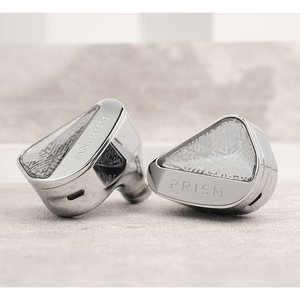 振動板素材に高分子カーボンナノチューブを採用した「第4世代DMTダイナミックドライバー」とSonion製BAドライバー2基によるハイブリッド構成のイヤホン。ステンレス製のハウジングには凸状のサファイアガラスがはめ込まれており、シルバーのケーブルと合わせて非常にきらびやかな輝きを放っています。ケーブル分岐部の人工水晶にも注目。 (根本氏)