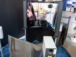 また同ブースでは、折り曲げられる超薄型4K有機ELディスプレイ“フレキシブルディスプレー”を用いたシステム「未来の没入型ディスプレー」も展示された。映像デモは海外の路面電車の運転席視点を映したもので、走行に合わせて振動する椅子の効果と、約180度の視野角をカバーする高繊細な映像により臨場感溢れる体験が可能だ。なお、これらのデモ体験についてはブース内で予約が必要となっている。