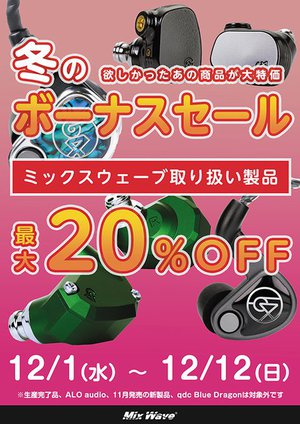 ミックスウェーブは、ヨドバシカメラとの共同キャンペーンとして、同社取り扱い製品が最大20%オフとなる「冬のボーナスセール」を、12月1日から開始する。