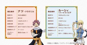 コラボイヤホンのラインナップは、『FAIRY TAIL』よりナツ(CV.柿原徹也)、ルーシィ (CV.平野 綾)、グレイ (CV.中村悠一)、エルザ (CV.大原さやか)の4種類、『EDENS ZERO』からは、シキ(CV. 寺島拓篤)、レベッカ (CV.小松未可子)の2種類が登場。本体および充電ケースは各キャラクターをイメージしたデザインとなっており、本モデルでしか聴けない豪華声優陣による録り下ろしボイスを搭載する。