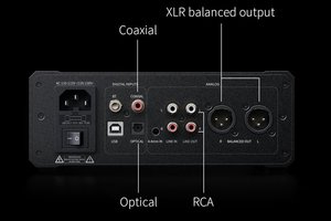 前面にはXLR4ピン、4.4mmバランス、6.35mmシングルエンドのヘッドホン出力端子を各1系統ずつ装備。背面にはUSB-B、4.4mmバランス、RCA、光/同軸デジタル入力と、XLRとRCAの出力端子を各1系統ずつ装備する。さらに側面にはUSB-C端子も備えている。