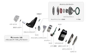 新設計されたハイブリッド・デュアルドライバーは、knowles社製のバランスド・アーマチュア(BA)ドライバーと、これに合わせた解像感と豊かな低音を提供する大口径10mmダイナミックドライバーを、各1基ずつの計2基搭載。