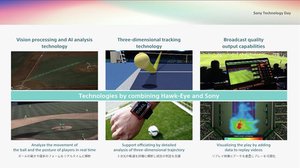 データ収集には、2011年からグループ傘下に参画したホークアイ イノベーションズの有する「EPTS(エレクトロニックパフォーマンストラッキングシステム)“SkeleTRACK(スケルトラック)”」を、データを可視化する映像技術にはソニーのイメージセンサーや放送品質の映像を扱う技術を使った「Data Visualization Technology」が活用されている。