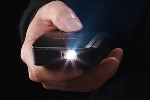 RICOH Image Pointer GP01は、手持ちで使えるポケットサイズが特徴的なプロジェクター。スマートフォン等の画面を、コードレスに机や壁、床などに自由に投影し、写真や情報を手軽に共有することができる。