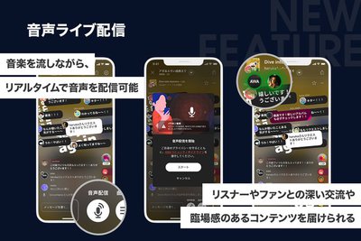 これにより、音楽サブスクサービスでは初となる「正規音源を流しながらの音声ライブ配信」が実現。手軽に本格的なラジオ番組を配信できるほか、弾き語りやライブ音声の公開、楽曲に込めた想いや裏話などをリアルタイムで伝えられるなど、アーティストとファンとの新しいコミュニケーションの場として利用することができる。