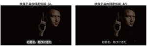 字幕の輝度低減については2段階から調整可能。字幕の明るさは映像も加味しており、明るいシーンと暗いシーンのそれぞれに合わせた調整が行われている。なお画面下部の字幕に最適化した設計とのことで、右側に縦向きで表示される字幕については、この機能で輝度低減されないという。