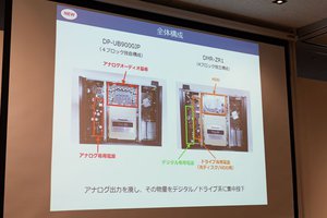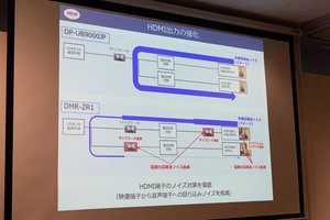 なお開発においては、技術者が音を追い込んでいく中で、映像の技術者が画も良くなっているか確認していくという、これまでにない進め方を行ったとのこと。最初にUB9000をベースにしてデジタル/ドライブの電源を分離させた際、余裕のある音が出たことで「これならUB9000を凌駕すると確信をもった」という。アナログ部分がなくなったことで、同軸回路やドライブ系電源の強化、グラウンド周りの電源強化など、デジタル部分に多くの改善が行われている。