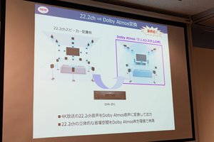 Dolbyとパナソニックの共同開発による技術で、変換後も遜色ない音場を再生できることが確認できたという。また同社のレコーダーは過去モデルも含めて、4KDRモードでは22.2chのストリームを記録しているため、ダビングでもDolby Atmos再生が楽しめる。