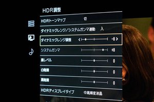 これまで調整項目にあった、ダイナミックレンジ/システムガンマを、連動して最適に調整してくれる設定も追加された。たとえばダイナミックレンジを上げて、システムガンマを下げることで、明るく高コントラストな表示が行える。従来はこれを手動で調整する必要があったが、連動設定をオンにすることで、より簡単に使うことができる。またシステムガンマについては、±6段階から±12段階に細かくなっている。
