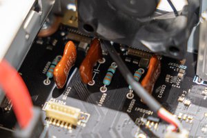 デジタル回路の強化で行われたのが、クロックの精度の向上。システム用クロックでは、超低位相ノイズ水晶発振器により、UB9000比で約15dBの改善が行われている。これは軍事転用できるほど性能が高いため、輸出規制があるものだという。またクロックの電源についても、ローカルレギュレーターに加えて、アナログのDAC周りで使われるチップフィルムコンデンサを活用することで、高域のノイズを押さえている。