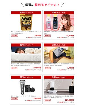 そのほか、スマートフォンやPC、キッチン家電や生活家電、グルメやファッション、日用品などにも様々な対象アイテムが登場中。詳細はキャンペーンページで確認できる。