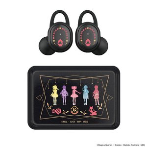 『魔法少女まどか☆マギカ』をフィーチャーした「CP-TWS01A MADOKA」は、両ハウジングにソウルジェムデザインを施した黒ベースの本体と、「鹿目まどか」「暁美ほむら」「巴マミ」「美樹さやか」「佐倉杏子」+「キュゥべえ」のシルエットデザインを配した充電ケースを用意する10周年記念コラボレーションモデル。