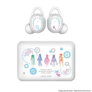 『マギアレコード 魔法少女まどか☆マギカ外伝』とのコラボモデル「CP-TWS01A IROHA」は、白を基調としたデザインを採用。充電ケースには「環いろは」「七海やちよ」「由比鶴乃」「深月フェリシア」「二葉さな」+「小さいキュゥべえ」のシルエットが描かれている。