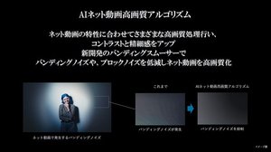 ネット動画を高画質化する「AIネット動画高画質アルゴリズム」も装備。バンディングノイズやブロックノイズを低減する「バンディングスムーサー」を新開発して搭載するなど、ネット動画の特性に合わせてさまざまな高画質処理行う。