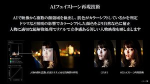 また、AIで映像から複数の顔領域を検出し、肌色がカラーシフトしているかを判定する「AIフェイストーン再現技術」も搭載。ドラマなど照明の影響でカラーシフトした顔色をより自然な色に補正するとともに、人物に適切な超解像処理でリアルで立体感ある美しい人物映像を映し出すとしている。