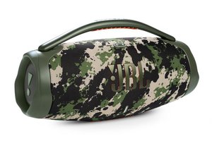 JBL Boombox 3は、パワフルなレーストラック型サブウーファー、2基のミッドレンジユニットと2基のトゥイーターを搭載した3ウェイの大型モデル。バッテリーも最長24時間の連続再生が可能な大容量となっており、アウトドアでのパーティーからドライブまであらゆる環境で、従来モデルよりも深い低音と強烈な透明感、パワフルなサウンドと届けるとしている。