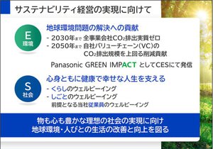 パナソニックは、「サスティナビリティ経営の考え方と取り組み」として、グループCEOの楠見雄規氏による説明会を開催した。
