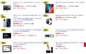 アップル製品では、iMacやiPad Pro、Apple Watch、Apple TV 4Kなどが安くなっている。店頭在庫品やパッケージ不良などだが、1人1台限りとなっているものが多いため、すばやく決断したいところだ。