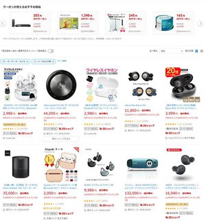 JBLのポータブルBluetoothスピーカー、パナソニックやJVC、東芝のラジカセタイプCDコンポ、BenQのプロジェクターなど、そのほかにもさまざまなAV機器が登場中。SDカードやBD-Rといった小物も大手メーカー品が対象になっている。