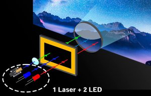 HU710PWは、青色レーザーと赤と青のLEDのハイブリッド型ランプを採用する4Kプロジェクター。青色レーザーと緑の蛍光体により鮮やかな緑色の再現が可能だとし、4Kの高解像度にふさわしい明るさと色彩表現を実現するという。