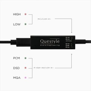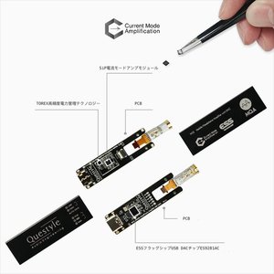 DACにはESS社のフラグシップチップ「ES9281AC」を搭載しており、最大PCM 384kHz/32bit、DSD 256のフォーマットや、MQAの再生に対応。また本製品はESS社と2年間の共同設計の末に開発されたもので、その記念としてQuestyle/ESS両方のロゴが記されている。