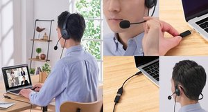 軽量オーバーヘッドセットは、周囲の音も聞きながら通話できる片耳タイプ「HS-HP21UCBK」と、しっかりと音声を聞き取れる両耳タイプ「HS-HP22UCBK」の2モデルを用意。手元での音量調整やマイクミュート操作が可能なコントローラーも付属するほか、コードには絡みにくいとするファブリックコードを採用する。