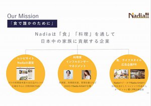 Nadia株式会社 代表取締役社長 葛城嘉紀氏も説明会に参加。同社では、2000万人のユニークユーザーをもつレシピサイト「Nadia」の 運営、ナディアアーティストという650人の料理家インフルエンサーのマネージメント事業、食とライフスタイルの広告企画PRという3つの事業を展開しており、「くらし×おトク+サイト」での連携にあたり、「我々はシーンやコンテンツづくりを得意とし、三菱電機はものづくりを得意とする。一緒に一人一人のシーンを見てのコンテンツづくりを、ファンサイトにとどまらずさまざまに行っていきたい」と語った。