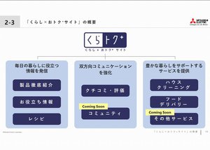 三菱電機株式会社は、一人一人のライフスタイルに寄り添ったサービスを提供する生活支援ソリューション事業の拡大にあたり、その中心となる独自のポータルサイト「くらし×おトク+サイト」を2月22日午前10時に開設。これにあたってのオンライン説明会を開催した。
