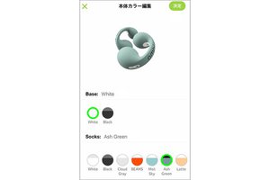 アプリでは、イヤホンとペアリングすると本体の画像が表示される。編集画面から「本体からを変更」を選択すると、ベースカラーと付け替えカバーのSocksカラーを選択でき、愛用するイヤホンと同じカラーにしたり、または付け替えカバー選びの参考にすることもできるとしている。なお、本機能はイヤホン本体とアプリを最新版にアップデートすると利用可能となる。