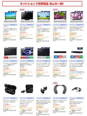 AV機器では、ソニーの4K有機ELテレビやパナソニックの“プライベート・ビエラ”、東芝やハイセンスのフルHDモデル、シャープやパナソニックのブルーレイレコーダーなどがセール対象に。ビクター、ゼンハイザー、BOSEの完全ワイヤレスイヤホンなど、ポータブルオーディオ関連アイテムも登場しているほか、BOSEからはサングラス型オーディオ「Bose Frames」なども対象になっている。
