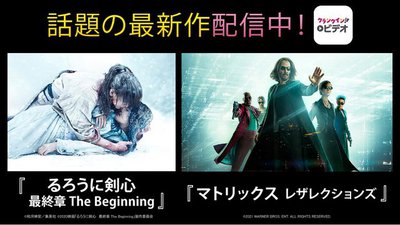 「クランクイン!ビデオ」は、ブロードメディア(株)が運営する動画配信サービス。『るろうに剣心 最終章 The Beginning』や『マトリックス レザレクションズ』等、話題の最新作のほか、人気ドラマ・アニメまで幅広いラインナップが楽しめるとしている。
