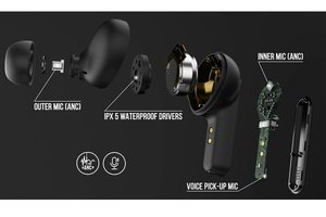 イヤホン本体は、あらゆる環境でクリアな通話を提供するように設計されたマイクを片側3基、合計6基装備。上位モデルと同じく、外音取り込み機能のアンビエントアウェア、トークスルー機能を備えており、イヤホンを装着したままでの会話、環境音の聞き取りに対応する。