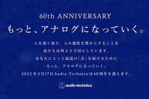 オーディオテクニカは、2022年4月17日に創業60周年を迎えるにあたり、新たな企業ブランドメッセージ「もっと、アナログになっていく。」とともに、この一年を通して様々な取り組みを展開していくと発表した。