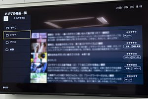 また今回、「新着番組」タブを「おすすめ録画一覧」としてリニューアル。先述のAIおすすめもここに表示される。なお、AIおすすめはドラマ/映画/アニメの3種類で行われるが、データの蓄積はコンテンツの種類毎で行われるため、たとえば恋愛ドラマの再生履歴からはドラマ作品のみがレコメンドされ、恋愛アニメ/映画はレコメンドされないとのこと。また、個別アカウントなど再生履歴、おすすめタイトルをユーザー毎に分ける方法は搭載されていない。