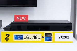 2X202は2TBのHDDを搭載し、2K放送の最大6ch×16日間のチャンネル録画と1番組録画が可能。チャンネル録画6chのうち、BS/CSは最大2chまで選択できる。端子はHDMI×1とUSB×1を装備しており、外形寸法は430W×60H×199Dmmで、質量は約2.7kg。