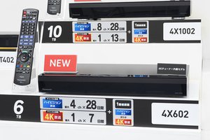 4X1002は10TBのHDDを搭載し、最大8ch×28日間の2K放送と1ch×13日間の4K放送のチャンネル録画と、2Kまたは4Kの1番組録画が同時に可能。外形寸法は430W×66H×239Dmmで、質量は約4.3kg。