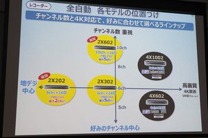 前モデルでは10ch録画対応機種がなかったことに加え、より多くのchを録画したい場合は4K対応の最上位機「DMR-4X1000」しか選択肢がなかったため、全自動ディーガの買い替えを見送ったという声もあったとのこと。そこで今回は10ch録画対応の2X602や、より手軽な2X202をラインナップさせたことで、ニーズに合わせて選べるようにしたという。