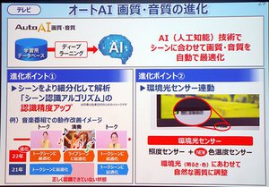 「オートAI画質」はコンテンツのシーンを認識し、それにもとづきシーンごとに本シリーズに搭載されている「ヘキサクロマドライブ」「AI HDRリマスター」「4Kファインリマスターエンジン」などの高画質化技術を統合的に制御。これによって映像を部分ごとに自動的に最適な画質に調整する。