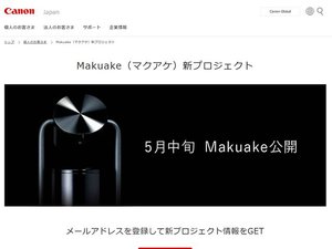 キヤノンは、新製品のティザーサイトを公開。5月中旬にMakuakeでのクラウドファンディングを行うことを予告している。